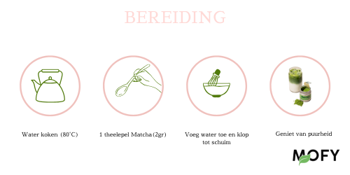 Klop 1 theelepel (1-2 gram) poeder met heet, niet kokend water (±80°C) tot een schuimige thee. Je kunt het ook verwerken in een matcha latte of smoothie.