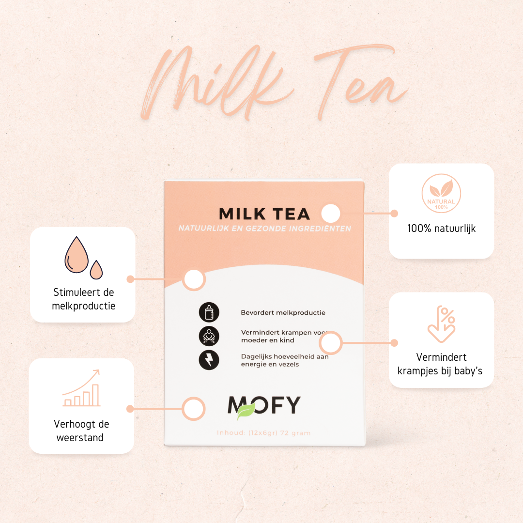 Ja, de Milk Tea van MOFY is veilig om te drinken tijdens het geven van borstvoeding. De thee is samengesteld uit 100% natuurlijke ingrediënten die bekend staan om hun ondersteunende werking op de melkproductie. Deze kruiden, zoals fenegriek en anijs, worden traditioneel gebruikt door moeders die borstvoeding geven. Bij specifieke gezondheidsvragen raden wij aan om contact op te nemen met een zorgverlener.